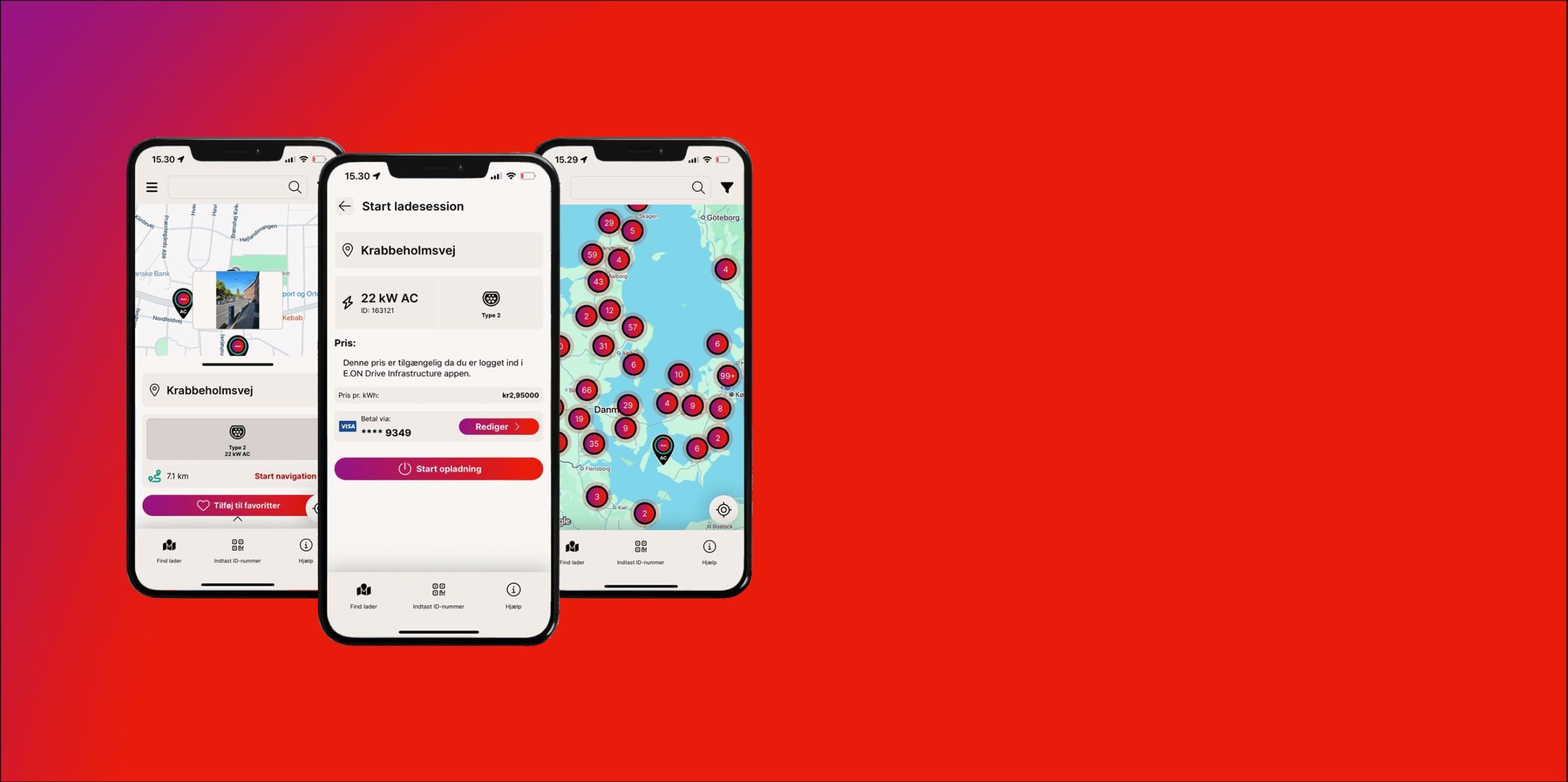 • Åben appen og find den ladestander du står ved via kortet fra E.ON Drive.
