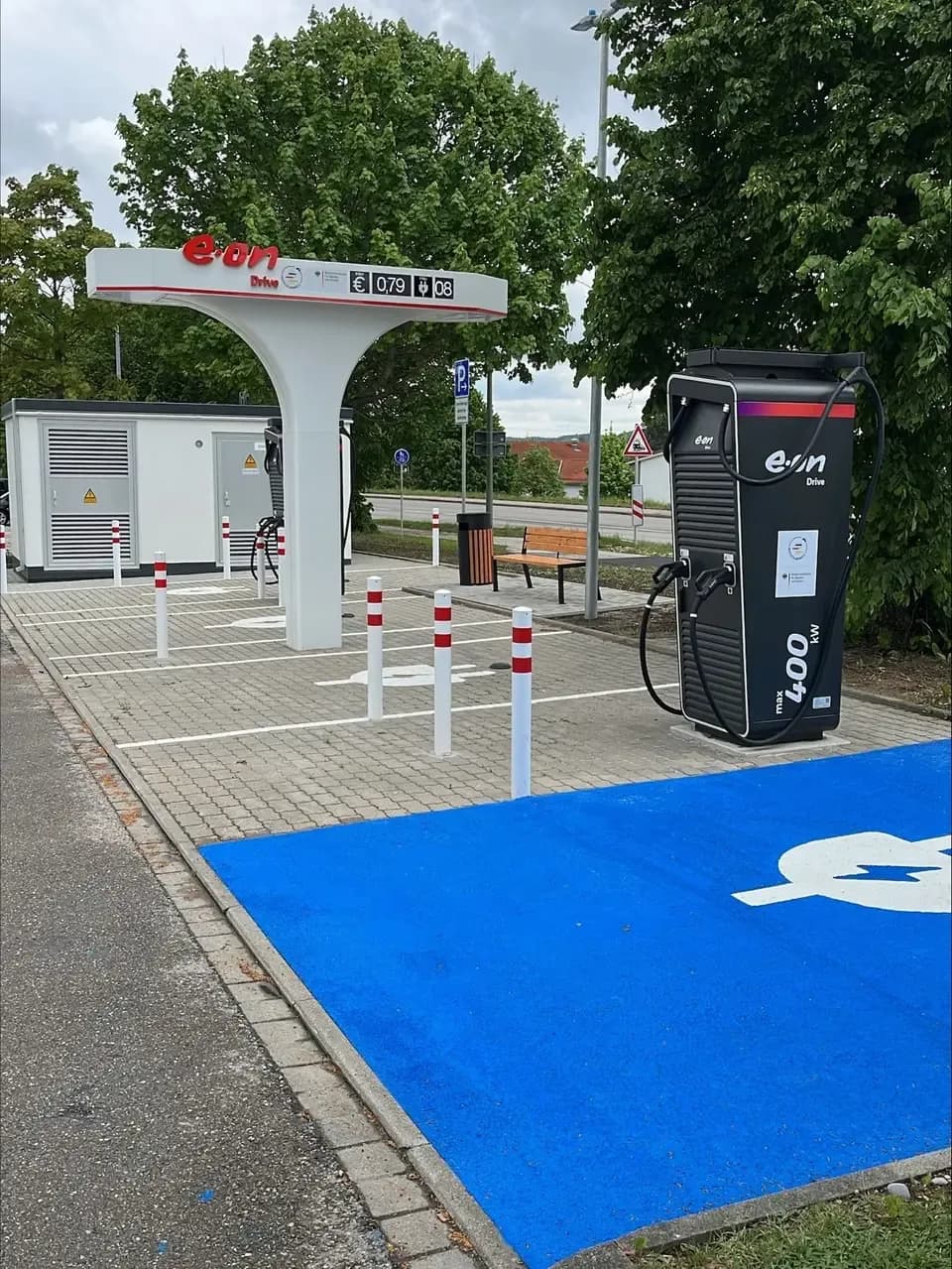 As part of the federal Deutschlandnetz initiative, E.ON has put four fast-charging stations into operation in Krumbach, Bavarian Swabia, each equipped with two charging points. Eight electric vehicles can charge simultaneously with up to 400 kilowatts of power. Modern electric cars can therefore be ready for the next stage of their journey in around 20 minutes.